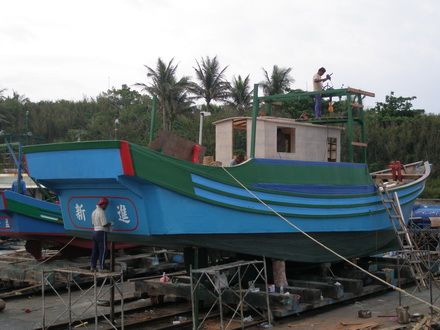 到了富岡碼頭,經小喜介紹後,我才知道要到綠島玩,就得到這裡搭船。在此看到了人家在製漁船,小喜問一位工人得知製造一艘漁船需要二百多萬,不知道是否有包含所有的設備?