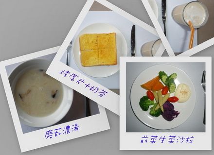 靜廬所供應的早餐(蔬果沙拉,蘑菇濃湯,烤香蒜厚片以及鮮奶茶),看起來真是既美味又豐盛